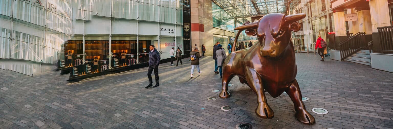 The Bullring is a retail complex in Birmingham city centre with more than 160 stores and 40 restaurants over four floors, making it one of the largest shopping centres in Europe.